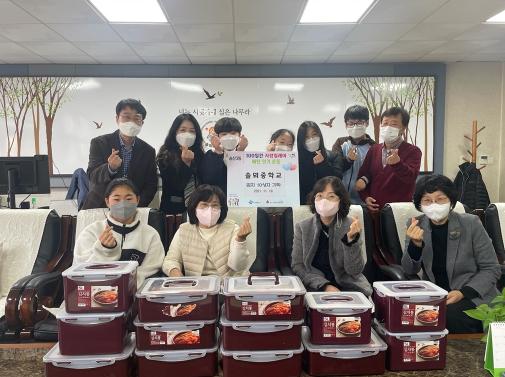 의정부시 솔뫼중학교는 11월 19일 송산3동행정복지센터를 통해 송산3동 취약계층을 위해 학생들과 함께 직접 담근 김치를 기탁했다고 밝혔다.