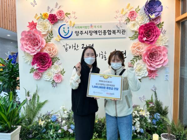 후원금을 기탁한 ‘생고기제작소 양주옥정점’ 대표는 “후원금이 양주시 취약계층 장애아동 지원과 지역장애인복지 발전을 위해 사용되길 바랍니다”라며 후원소감과 함께 지속적인 후원을 약속했다.