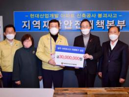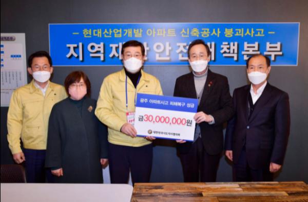 대한민국시도지사협의회가 현대산업개발 아파트 신축공사 붕괴사고 수습 지원금 3000만원을 전달했다.