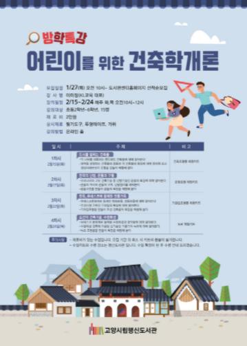 고양시 행신도서관이 초등학생을 대상으로 2월 15일부터 방학특강 '어린이를 위한 건축학개론'을 운영한다.