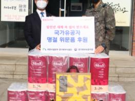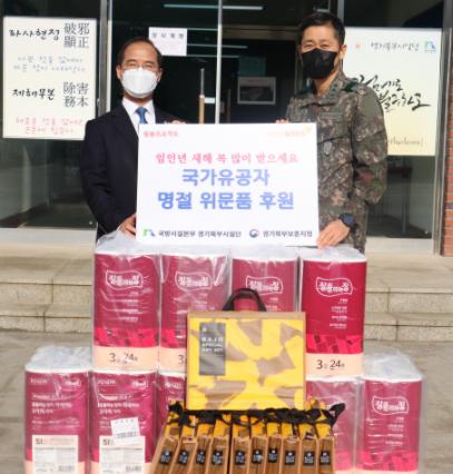 경기북부보훈지청(지청장 한국성)은 1월 26일 국방시설본부 경기북부시설단(단장 오태호 대령)과 고양 거주 생계곤란 6.25참전유공자 본인 및 유족 총 20가구를 위한 설명절 계기 후원물품 전달식(온누리상품권 및 생필품선물세트, 총80만원 상당)을 가지고 이를 대상자분들께 전달하였다.