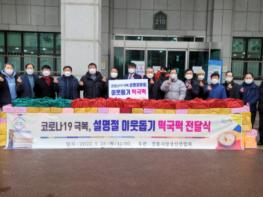 부천시와 부천시전통시장상인연합회(회장 남일우)는 설 명절을 앞둔 25일 시청 앞에서 사랑의 떡국떡(4kg, 170포 / 425만원 상당) 전달식을 가졌다.