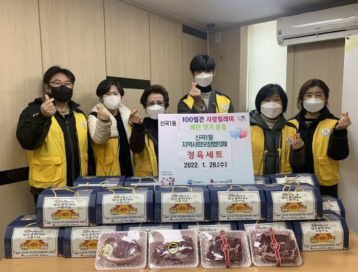 의정부시 신곡1동지역사회보장협의체는 100일간 사랑 릴레이 배턴 잇기의 일환으로 1월 26일 명절 선물(정육) 세트 40개를 기탁하고, 명절이 되면 더욱 쓸쓸함을 느끼는 홀몸 어르신 및 코로나19로 어려움을 겪고 있는 관내 저소득 40가구를 방문해 안부를 확인하고 기탁 물품을 전달하는 뜻깊은 나눔을 실천했다.