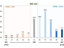 우선 코로나19 이전과 비교하여 스트레스가 ‘높아졌다’는 응답은 전체 72.7%였는데, 이는 ‘낮아졌다’ 9.5%의 7.6배 이상이다. 연령대별로 스트레스가 높아졌다는 응답은 40대 78.4%, 20대 76.4%, 30대 72.3%, 50대 70.3%, 60대 이상 64.7% 등이다.