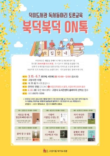 고양시 덕이도서관이 새봄을 맞이하여 독서전문코칭 수업을 통한 독서 토론교육'북덕북덕 ON톡'강좌를 진행한다.