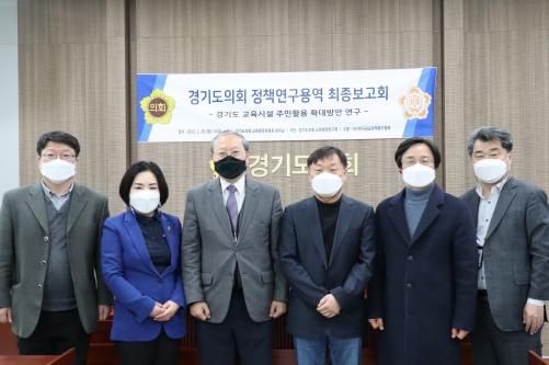 이날 최종보고회에는 남종섭 의원(민주, 용인4), 권정선 의원(민주, 부천5), 배수문 의원(민주, 과천), 권순신 경기도교육청 시설과장 등이 참여해 연구에 대한 제언을 하였으며, 이번 연구의 수행기관은 한국공공정책평가협회로 박병식 동국대 교수가 책임을 맡았고, 연구기간은 3개월이다.
