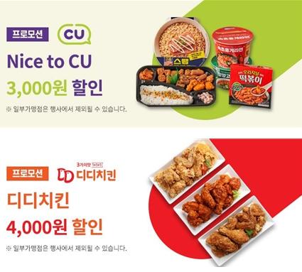 이번에 고객들에게 선보일 제휴 이벤트 브랜드는 편의점 브랜드인 CU와 치킨 브랜드인 디디치킨·페리카나, 피자 브랜드인 파파존스 총 4개이다.