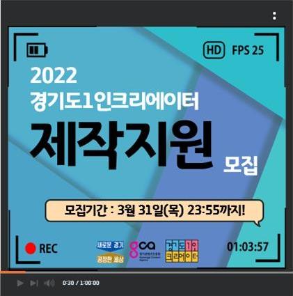 경기도와 경기콘텐츠진흥원이 도내 1인 크리에이터(온라인 영상 창작자)의 성장을 돕는 ‘2022 경기도 1인 크리에이터 제작지원 및 사업화지원’의 참여자를 모집한다.