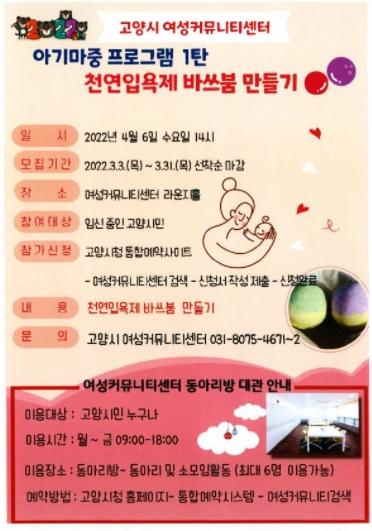 고양시 여성커뮤니티센터는 관내 임신부들을 위해 ‘아기마중 프로그램 1탄’을 4월 6일에 운영한다.