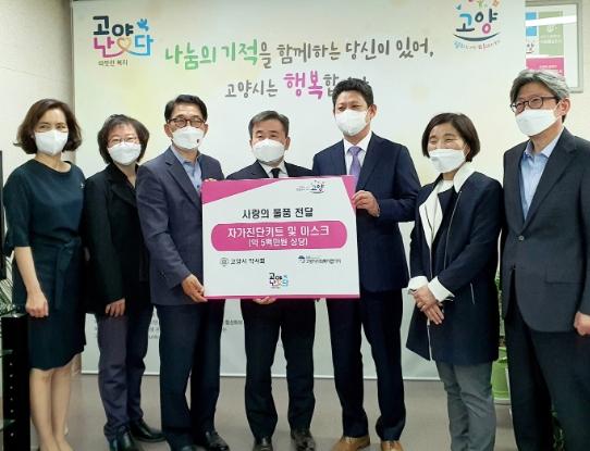 고양시는 지난 21일 고양시 약사회에서 관내 취약계층을 위해 코로나19 자가진단키트 및 마스크를 기부해 전달식을 진행했다고 밝혔다.