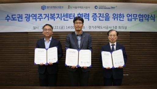 경기주택도시공사(GH)가 수탁운영 중인 경기도 주거복지센터는 22일 수도권 주거복지서비스 강화를 위해 서울시 중앙주거복지센터 및 인천광역시 주거복지센터와 업무협약을 체결했다고 밝혔다.