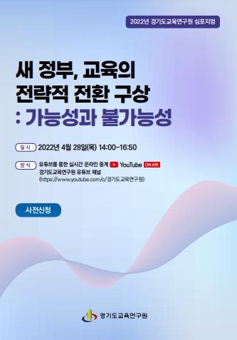 경기도교육연구원(원장 이수광)은 오는 28일 오후 2시 경기도교육연구원 대강당에서 새 정부의 교육적 구상에 대하여 ‘전환’의 관점에서 조망하는 심포지엄을 개최한다.