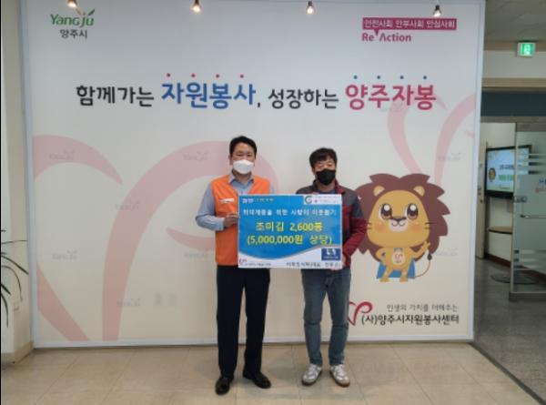 자원봉사센터 사무실에서 진행된 전달식에는 김용훈 양주시자원봉사센터장, 전유신 대표 등이 참석한 가운데 간소하게 진행됐으며, 기탁받은 조미김은 양주시 관내 장애인 단체와 장애인 활동지원센터에 전달될 예정이다.