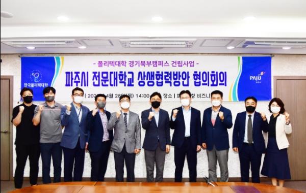 파주시는 28일 한국폴리텍대학 경기북부캠퍼스 건립추진에 따라 한국폴리텍대학, 관내 대학교 간 상생 협력방안 모색을 위한 협의를 했다.