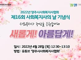 이날‘새롭게! 아름답게!’라는 주제로 개최된 기념식은 사회복지사 선서를 필두로 양주시사회복지사협회 등 관내 사회복지기관과 단체 소개영상을 제작해 사회복지계 단합의 장 마련과 더불어 시민들의 사회복지 정보 접근성을 높였다.