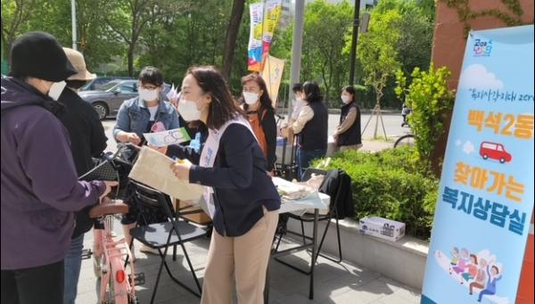 고양시 일산동구 백석2동행정복지센터(동장 신동엽)는 지난 27일 동 지역사회보장협의체 주최로 ‘찾아가는 복지상담소’를 운영했다.