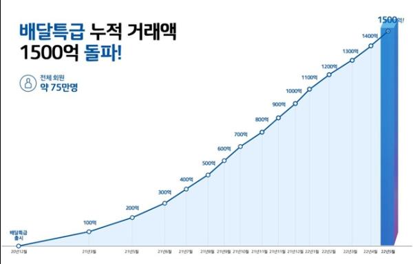 공공배달앱 배달특급이 누적 거래액 1,500억 원 돌파의 금자탑을 쌓았다.