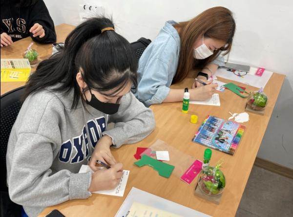 이번 봉사활동에 참여한 청소년들은 자원봉사 소양교육과 어버이날의 의미, 우리나라 독거 어르신들의 현황, 어려움 및 고충에 대해 이해하고 생각해보는 시간을 가진 뒤 카네이션 테라리움 만들기, 카드 카네이션 제작, 손 편지 작성 및 포장하여 관내 노인 복지시설에 전달하는 활동을 진행했다.