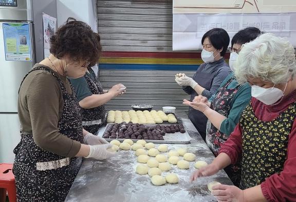 매월 셋째 주 수요일 수요빵봉사회 주도로 빵을 만들면 복지관의 독거노인 생활지원사 및 지역사회보장협의체 위원이 홀로 사는 어르신 가정을 직접 방문해 빵 전달 및 말벗서비스를 제공한다.