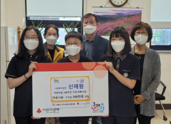 이번에 전달된 후원금은 신애원 아이들이 어린이날 100주년 기념 바자회를 통해 얻은 수익금으로 마련돼 그 의미가 더 크며, 관내 한부모가정 5가구에 장학금으로 전달될 예정이다.