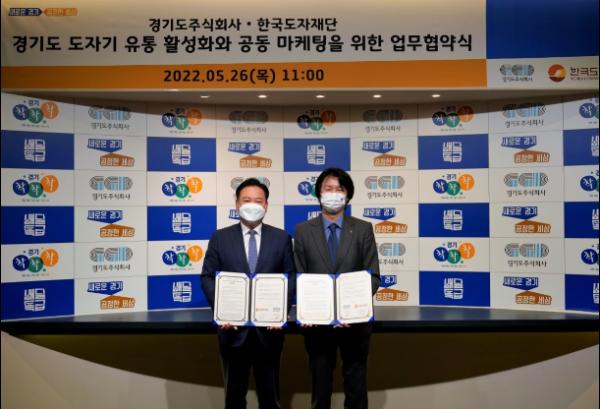 한국도자재단과 경기도주식회사가 26일 성남시 경기도주식회사에서 ‘경기도 도자기 유통 활성화 공동 마케팅’을 위한 업무협약을 체결했다.