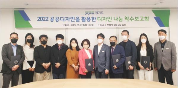 경기도는 27일 도청 신청사에서 올해 ‘2022 공공디자인을 활용한 디자인 나눔 사업’ 위·수탁 계약업체 ‘(주)매스씨앤지’와 착수보고회를 열고 디자인 전문가 6명을 위촉했다.