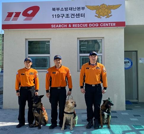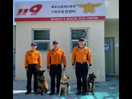 이번에 입상한 주인공들은 현재 북부소방재난본부 북부특수대응단에 배치돼 임무 수행 중인 119구조견 아롱(8세, 수컷), 전진(7세, 수컷), 태공(5세, 암컷)과 핸들러 소방장 오문경, 소방장 장택용, 소방교 김기상 대원이다.