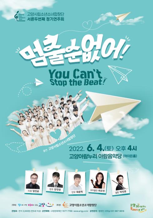 푸른 녹음이 시작되는 6월, 고양시 대표 청소년 문화사절단인 고양시립소년소녀합창단이 제32회 정기연주회 <멈출 순 없어! You can’t stop the beat!>를 오는 6월 4일(토) 오후 4시 아람음악당 하이든 홀에서 개최한다.