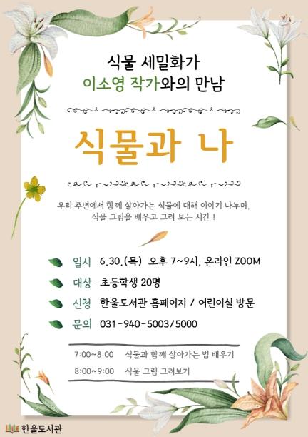 이현주 교하도서관장은 “어린이들이 일상생활 속 식물들을 새롭게 발견하고 친밀한 관계를 맺으며, 자연의 소중함을 생각해 볼 수 있는 시간이 되길 바란다”고 말했다.