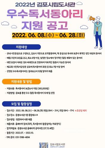 김포시립도서관, 2022년 우수 독서동아리 육성 지원사업 모집
