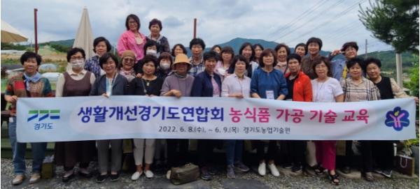 경기도농업기술원이 8일과 9일 이틀 간 충북 충주, 제천시에서 생활개선경기도연합회 임원과 시·군 회장 30여 명을 대상으로 지역 농산물 소비 촉진을 위한 ‘농식품 가공 기술 교육’을 실시했다.