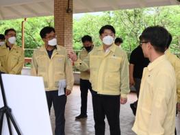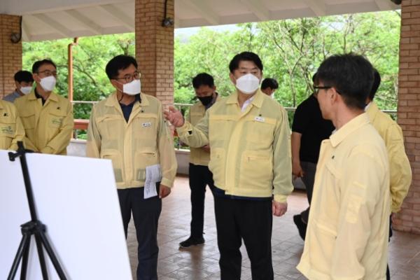이한규 경기도 행정2부지사가 가뭄 장기화에 대비해 포천시, 한국농어촌공사 관계자들과 함께 9일 오후 포천시 영북면 소재 산정호수를 찾아 관련 대책 마련을 위한 현장 행보에 나섰다.