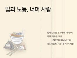파주중앙도서관은 ‘밥과 노동, 너머 사람’이라는 주제로 오는 14일 정은정 작가와의 만남을 진행한다고 밝혔다.