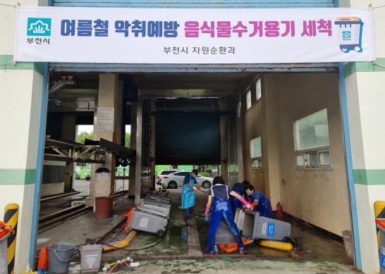 부천시는 지난해에 이어 여름철 악취 발생을 방지하고 위생적인 주거환경 조성을 위해 음식물쓰레기 수거용기(120리터) 세척 작업을 이달부터 시작했다.