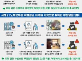 또한 화성시에 거주하는 C씨는 화성시 소재 아파트 ‘동탄2 제일풍경채 퍼스티어’ 노부모부양 특별공급을 분양받기 위해 용인시 처인구 소재 본인 소유 아파트에 2015년부터 현재까지 거주 중인 아버지를 2018년 5월 화성시에 거짓 전입신고하고 아파트를 공급받아 5억 원의 부당이익을 챙겼다. 이처럼 3년 이상 부양 조건인 노부모부양 특별공급 자격을 거짓으로 취득해 부정하게 당첨된 사람은 22명으로 이들의 부당이익은 총 182억 원이다.