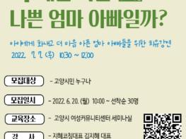 고양시 여성커뮤니티센터에서 여름방학을 맞이해 ‘즐거운 여름방학, 화 안내는 부모 되기 ’특강을 진행한다.
