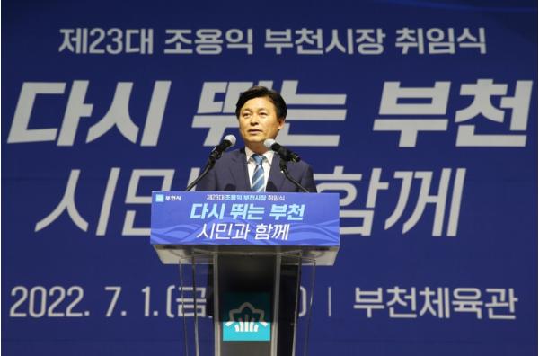 민선8기 조용익 부천시장 취임식이 1일 저녁 7시 부천체육관에서 개최됐다.