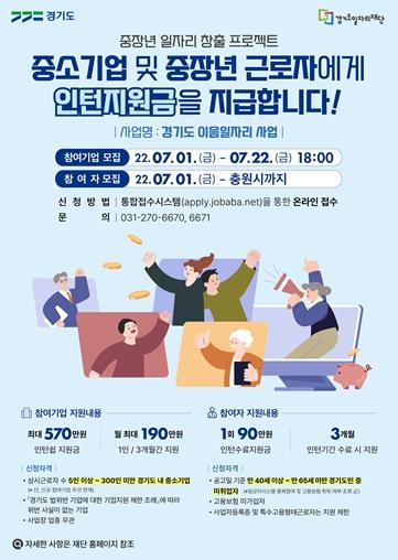 모집 대상은 ‘기업’의 경우 노동자 수 300인 미만의 도내 중소기업, ‘구직자’는 경기도민 중 만 40세 이상 65세 미만 신중년 구직자다.