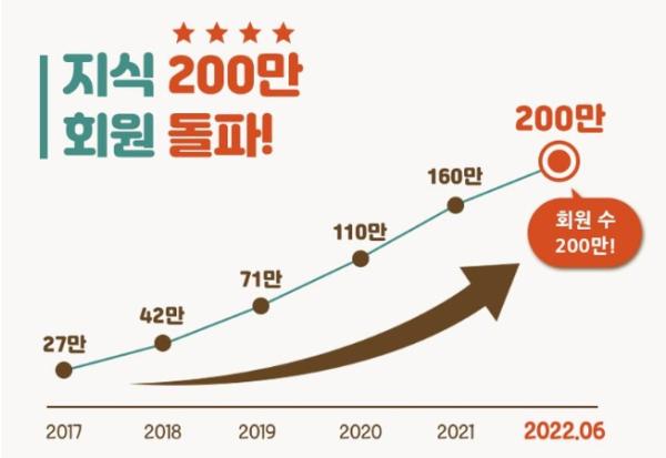 지식(GSEEK)은 회원 수 200만 명 돌파를 기념해 7월 30일까지 지식누리집에서 온라인 이벤트를 진행 중이다. 축하 댓글을 남기거나 친구 추천을 한 회원을 대상으로 추첨을 통해 모바일 커피 쿠폰과 문화상품권 등 다양한 경품을 제공한다.