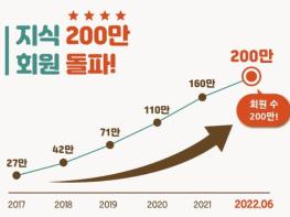 경기도평생학습포털서비스 ‘지식(GSEEK)’ 회원 수가 회원 수 100만 명을 돌파한 지 1년 6개월여 만에 200만 명을 넘어섰다. 서비스 개설 시점으로 따지면 5년 8개월 만이다.