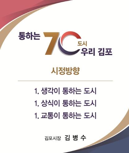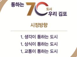 김병수 김포시장의 4년 시정방향 등을 담은 민선 8기 시정 구호가 '통하는 70도시 우리 김포'로 확정됐다.