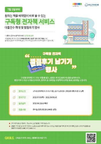 이번 대출 권수 개편을 맞이해 도는 ‘구독형 전자책 이용 후기 작성 응모 행사’도 진행한다. 7월 5일부터 8월 5일까지 구독형 전자책(오디오북 포함)을 1권 이상 읽고 별점과 이용 후기를 남기면 자동 응모되며, 참가자 중 100명을 추첨해 모바일 음료 교환권을 증정한다.