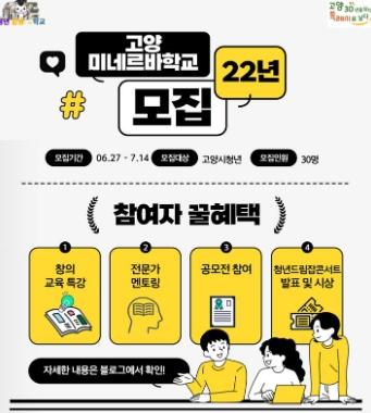 고양시가 청년 진로교육 프로그램 ‘고양 미네르바학교’를 7월 20일(수)부터 8주간 운영한다.