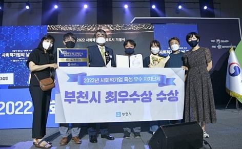 부천시는 7월 8일 경주 화백컨벤션센터에서 개최된 ‘2022년 사회적기업의 날’ 기념식에서 사회적기업 육성 자치단체 ‘최우수상’을 수상하며, ‘사회적경제 친화도시’로도 선정되는 영예를 안게 되었다.