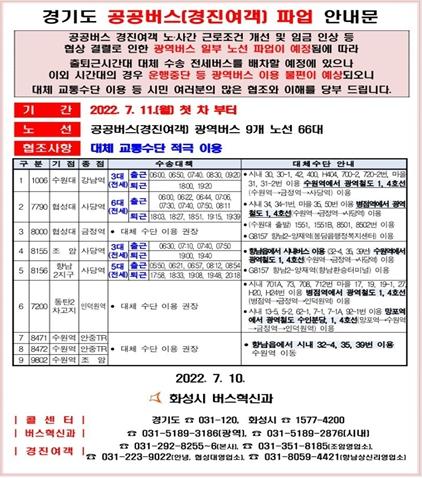 이번 대책은 수원시와 화성시 공공버스 13개 노선을 운행 중인 경진여객 노조에서 7월 11일 첫차부터 총파업에 돌입하겠다고 10일에 통보함에 따라 마련됐으며 경기도와 수원시, 화성시는 긴급 비상수송대책본부를 구성하고 전세버스 등 대체 교통수단을 11일 첫차부터 바로 투입하기로 했다.