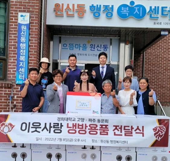 경희대학교 고양·파주 총동문회가 십시일반으로 뜻을 모아 기탁한 선풍기는 원신동 지역사회보장협의체를 통해 어려운 이웃들에게 전달될 예정이다.
