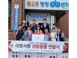 고양특례시 원신동은 지난 8일 경희대학교 고양·파주 총동문회가 더위에 약한 취약계층이 무더운 여름을 시원하게 이겨낼 수 있도록 원신동행정복지센터에 선풍기 20대를 후원했다고 밝혔다.