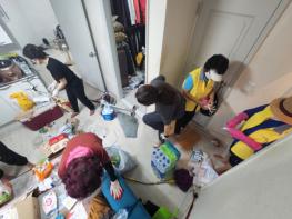 이번 대상자는 가족이 없는 청장년 1인 가구로 희귀난치성 질환 및 경제적 어려움으로 혼자서는 청소할 엄두조차 낼 수 없는 가구였다. 집안에는 음식물 쓰레기, 재활용 식품용기 등이 방치돼있어 대상자의 건강까지 우려되는 상황이었다.