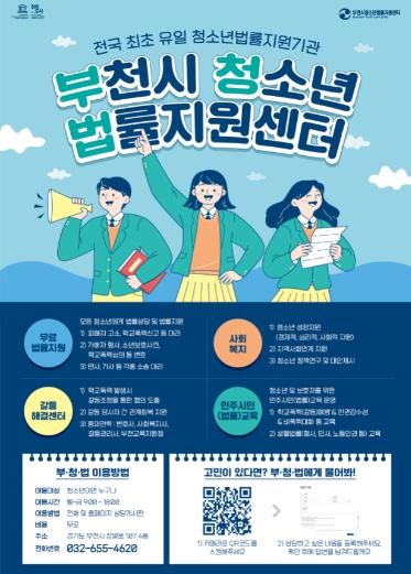 특히 부천시가 2014년 7월 설립한 부천시 청소년법률지원센터는 전국에서 유일한 청소년 법률지원 기관으로 위기청소년의 법률지원과 사회복지 융합 서비스를 제공하는 등 청소년의 건강한 성장과 선도·보호 활동에 기여한 공적을 인정받아 2022년 청소년 선도·보호 유공 기관으로 경기도지사 표창을 수상했다.