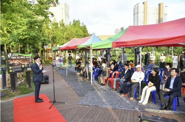 이날 개장식에는 김병수 김포시장과 박상혁 국회의원, 김인수,유영숙,장윤순,정영혜 시의원을 비롯한 주민 80여명이 참석한 가운데 개장식 행사는 식전 버스킹 공연을 시작으로 김포시장, 국회의원 등의 축사, 테이프 컷팅, 황톳길 체험 순서로 진행됐다. 이번 행사는 김병수 김포시장이 당선된 이후 장기본동에서 치르는 공식적인 첫 일정이다.